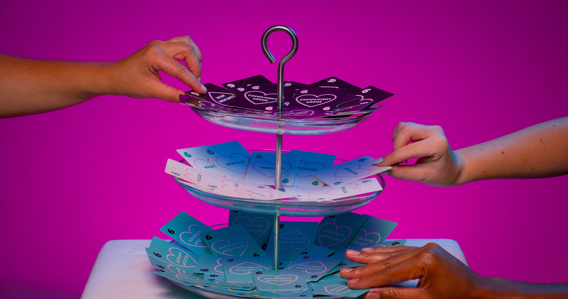 Aggressive Affection is a game that brings the love to the party in the most fun, hilarious way! Each round, players compete to make one another react by shouting, whispering, and creatively giving one another compliments...aggresively!